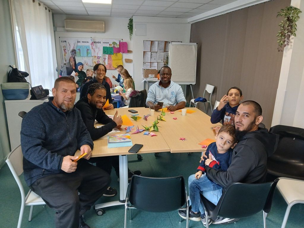 Tout a commencé par une première après-midi placée sous le signe de la découverte, avec une initiation à l’origami et à la peinture au fil de laine. Deux techniques ludiques, faciles à prendre en main, qui permettent à chacun de participer sans prérequis, et qui créent naturellement une dynamique collective. Au-delà du geste créatif, ces ateliers jouent un rôle clé : ils donnent un cadre, une respiration, et une occasion concrète de se retrouver dans une ambiance chaleureuse, y compris avec les familles. C’est précisément cette logique d’accueil “par le quotidien” qui s’inscrit dans la mission d’Adoma : héberger et accompagner, en s’adaptant aux besoins des publics et aux réalités de terrain.